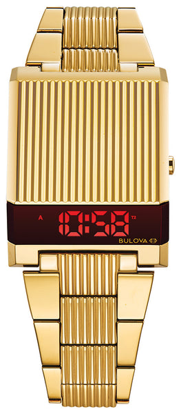 Infusing some of Bulova’s most iconic and nostalgic timepieces with modern elements, the Archive Series continues with the digital LED Computron. The sleek gold-tone stainless steel design features a red LED display, expanded digital functionality now with dual time zone capabilities, and a distinct retro design that is as relevant today as it was in the 1970’s. Water resistance to 30 metres. Calibre: LED