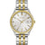 Elegant and perfectly refined describe this graphic white dial, three-hand gold-tone accented stainless steel watch. Featuring a textured bezel detail, date magnifier and stainless steel bracelet with gold-tone accents and double-press fold-over closure.