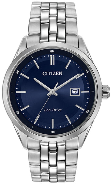 With a sleek design, this timepiece from CITIZEN®'s Corso collection with a sapphire crystal and date is sure to capture attention. Shown with a stainless steel case and bracelet with a blue dial.